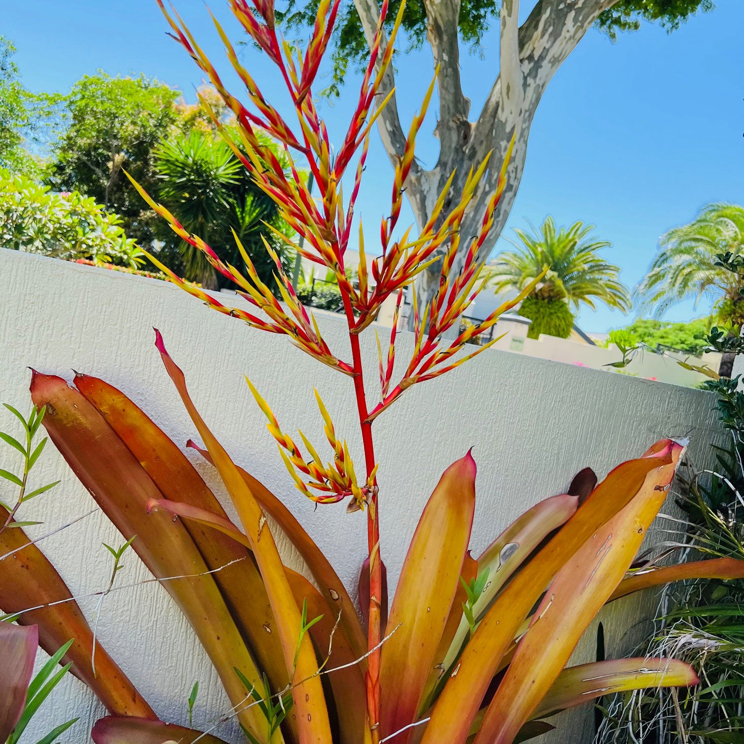 Orange bromeliads prefer dappled sunlight, but can be acclimatised to partial or even full sunlight over time. Keep in mind that full summer sun on the Gold Coast may burn your bromeliad's leaves.